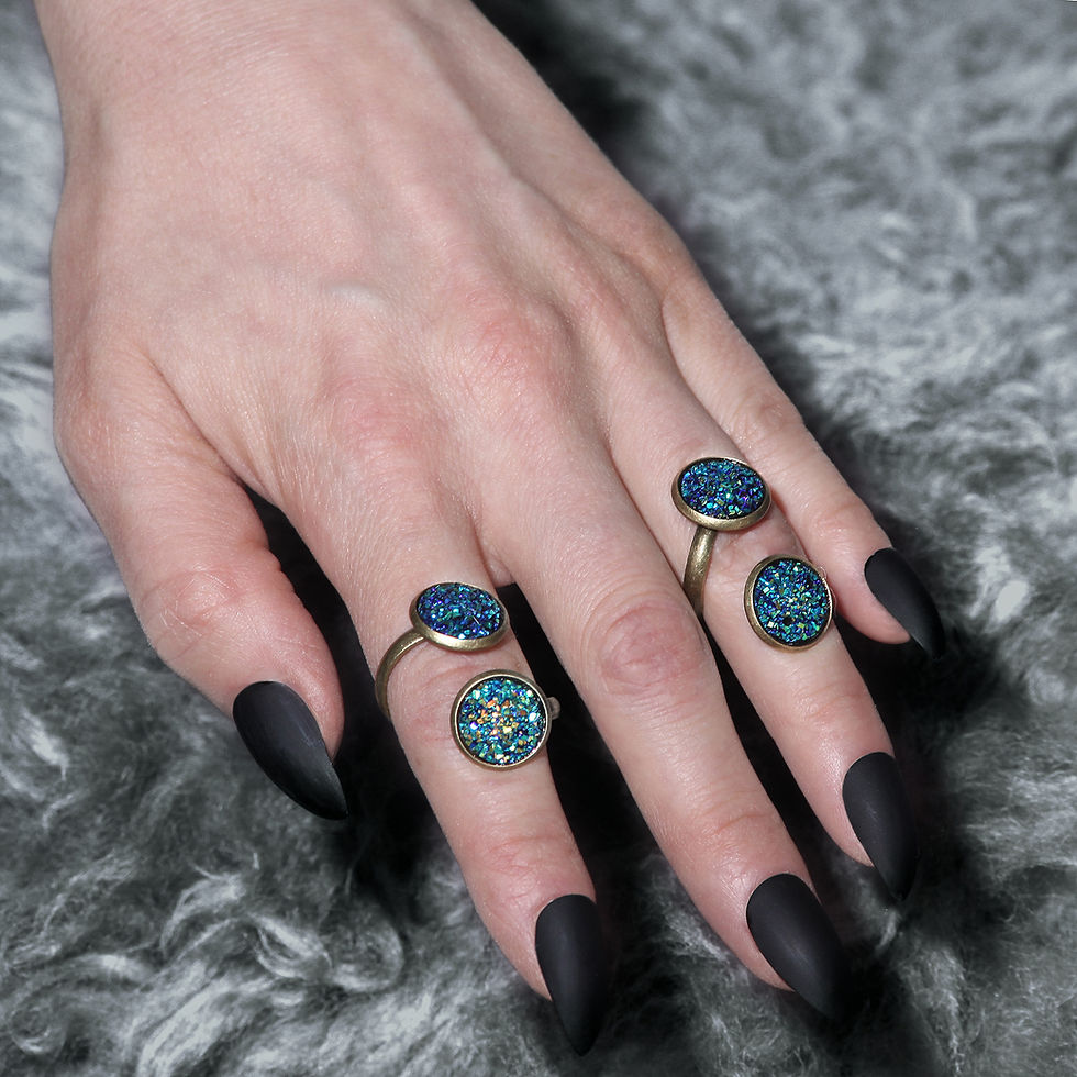 Antique Brass Ring w/ Crested Fuchsia Druzzy Stone